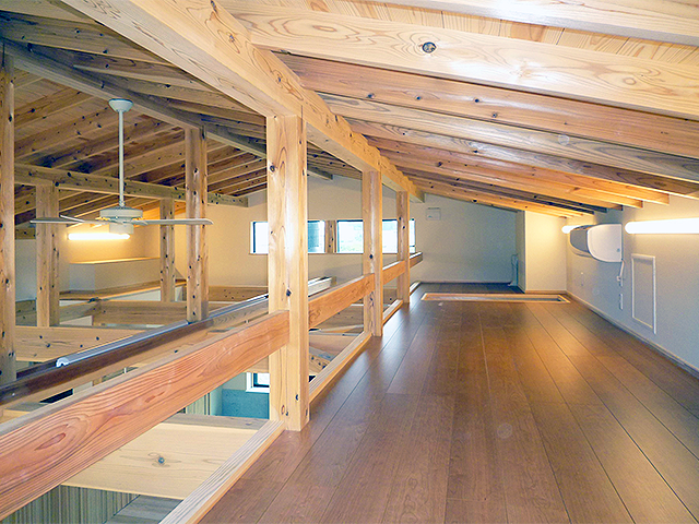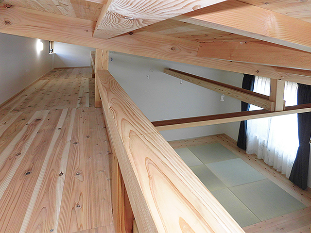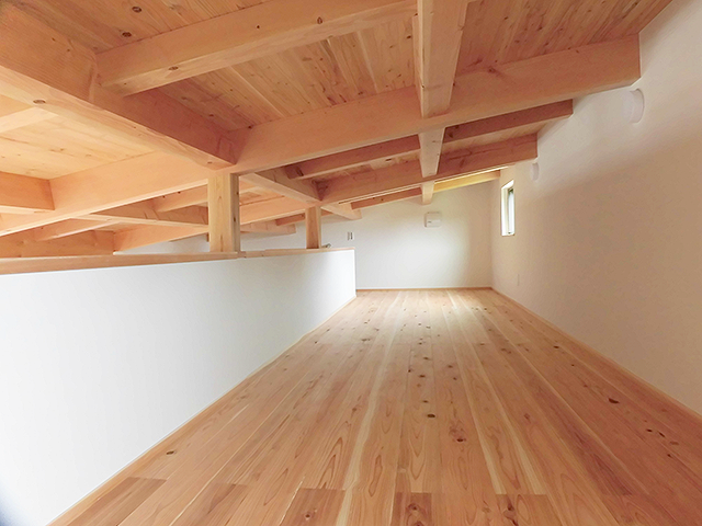 外観特集はコチラ 内観特集はコチラ 薪ストーブ特集はコチラ 過去の事例はコチラ 外観特集はコチラ 内観特集はコチラ 薪ストーブ特集はコチラ 過去の事例はコチラ グッドリビングの創意工夫を凝らした「こだわりの内観」。 ロフト 平家づくりにできた9畳大のロフトです。吹抜け部分は約18畳になります! 3層階部分にできた4.5畳大のロフトです。3階建てと同じような固定階段が付いています! 3層階部分にできた約12畳大のロフトです。北側の小さな高窓ですが、1階の南側掃き出し窓からの通気となります! 3層階部分にできた6畳大のロフトです。4.5畳大の吹抜けを介して、1階から繋がる大空間づくりです! 平屋建てにできた6畳大のロフトです。右側のLDK上部の吹抜け空間は、全部で32畳大になります! 3層階部分にできた4.5畳大のロフトです。吹抜けを介して1階掃き出し窓からの空気が抜けます! 2階の北側小屋組み部分を利用した列状のロフトです。全部で5.5畳あります。階段は固定ではなく移動式階段です! スキップフロアになり、4層階にできた9.5畳大のロフトです。建物内空間を余すことなく利用した大容量設計です! 想.souシリーズ特有の構造上にできた列状のロフト8畳大です。固定階段で上るタイプです! ロフトから9畳大の吹抜けを見ています! 最上部に付いたエアコンは、夏場対策用で上から冷やします! 3層階部分にできた5畳大のロフトです。壁も天井も白い部分は、全部、珪藻土塗り壁仕上げになっています! 平屋建てにできた約8畳大のロフトです。左側のLDK上部の吹抜け空間は、27畳大の広々空間です! 3層階部分にできた4.5畳大のロフトです。右側の吹抜けは、1階から続く登り梁特有の14畳の大空間にづくりです! 3層階部分にできた7畳大のロフトです。床材は赤松を貼っています! 3層階部分にできた9畳大のロフトです。移動式のはしごで上ります! 3層階部分にできた6畳大のロフトです。吹抜けとは繋がらない個室タイプです! 登り梁が綺麗に並ぶ、構造が、よくわかるロフトです。 想.souシリーズ特有の空間にできた8畳大のロフトです! もっと「ロフト」の施工事例を見る 内観特集インデックスにもどる