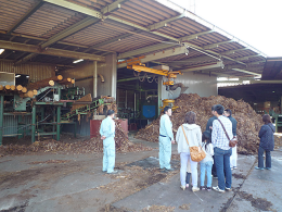 製材工場へ到着伐採現場まで来た山道を戻り、今度はウッディーコイケさんの本社に隣接した「製材工場」へ向かいます。社長さんのお出迎えを受け、早速工場見学へ。