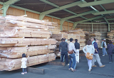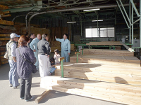 山で伐採された原木を玉切りし、樹種・径・長さごとに仕分けされ、いったん貯木場に集められます。用途ごとに貯木場から運び込まれた丸太を、製材工場で製材・乾燥・仕上げ・検品、製品になるまでを見学しました。