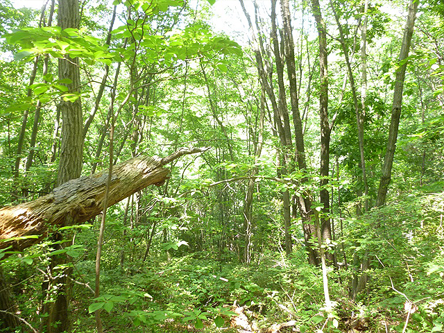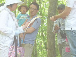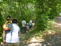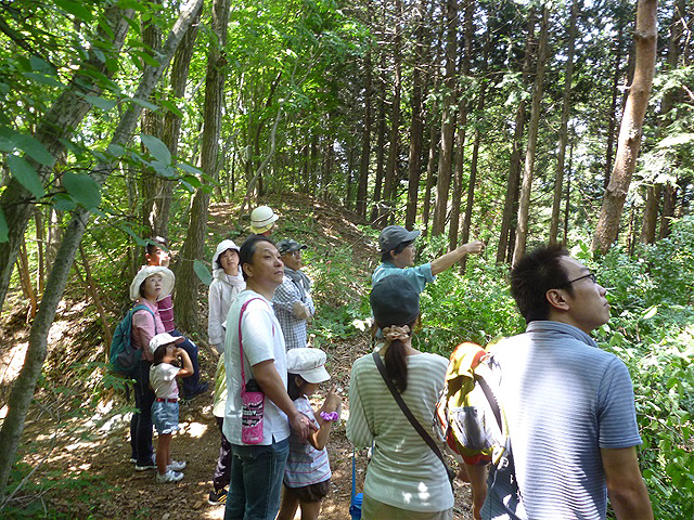 山のあり方、林業の取り組みなどのお話を聞いた後で、伐採現場へ山の中の細い急な道を、周りの風景を楽しみながら下ること約5分ほどで到着しました。
