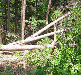 木が倒れる時の音は、雷のような音がします。この時期の木は水分を多く含んでいるため、伐採した状態で放置しておくと虫が入っていまい、木がダメになってしまうので、秋ごろには伐採する方が良いとのことでした。今回は、特別に伐採を実演していただきました。