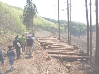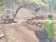 バスの中では、吉田支店長が用意してくれたDVD(WOOD JOB)に見入ってしまい、終わるのと伐採現場に到着するのが、ちょうど同じタイミングでした。