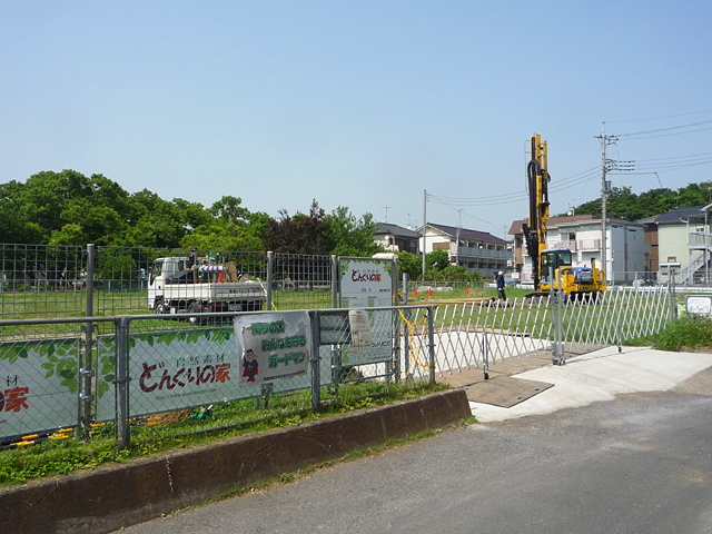 地盤調査結果を踏まえ、不陸にならないように地盤改良工事を行いました! 3m付近に水位の調査データを考慮し、「環境パイル工法」による改良工事を選択しました。2日間に渡って、末口180mm・長さ6mの木杭を71本打ち込みました。10年間の地盤保証が付きます!