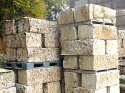 <b>大谷石原石</b><br /> 加工場付近には、いたるところに、さまざまなサイズの原石が積んであります。かなり日焼けして茶色くなっていました。