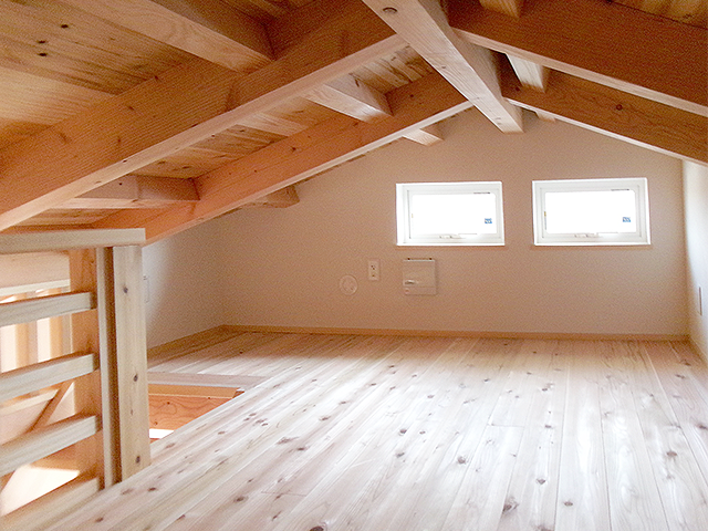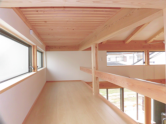 外観特集はコチラ 内観特集はコチラ 薪ストーブ特集はコチラ 過去の事例はコチラ 外観特集はコチラ 内観特集はコチラ 薪ストーブ特集はコチラ 過去の事例はコチラ グッドリビングの創意工夫を凝らした「こだわりの内観」。 ロフト 平家づくりにできた9畳大のロフトです。吹抜け部分は約18畳になります! 3層階部分にできた4.5畳大のロフトです。3階建てと同じような固定階段が付いています! 3層階部分にできた約12畳大のロフトです。北側の小さな高窓ですが、1階の南側掃き出し窓からの通気となります! 3層階部分にできた6畳大のロフトです。4.5畳大の吹抜けを介して、1階から繋がる大空間づくりです! 平屋建てにできた6畳大のロフトです。右側のLDK上部の吹抜け空間は、全部で32畳大になります! 3層階部分にできた4.5畳大のロフトです。吹抜けを介して1階掃き出し窓からの空気が抜けます! 2階の北側小屋組み部分を利用した列状のロフトです。全部で5.5畳あります。階段は固定ではなく移動式階段です! スキップフロアになり、4層階にできた9.5畳大のロフトです。建物内空間を余すことなく利用した大容量設計です! 想.souシリーズ特有の構造上にできた列状のロフト8畳大です。固定階段で上るタイプです! ロフトから9畳大の吹抜けを見ています! 最上部に付いたエアコンは、夏場対策用で上から冷やします! 3層階部分にできた5畳大のロフトです。壁も天井も白い部分は、全部、珪藻土塗り壁仕上げになっています! 平屋建てにできた約8畳大のロフトです。左側のLDK上部の吹抜け空間は、27畳大の広々空間です! 3層階部分にできた4.5畳大のロフトです。右側の吹抜けは、1階から続く登り梁特有の14畳の大空間にづくりです! 3層階部分にできた7畳大のロフトです。床材は赤松を貼っています! 3層階部分にできた9畳大のロフトです。移動式のはしごで上ります! 3層階部分にできた6畳大のロフトです。吹抜けとは繋がらない個室タイプです! 登り梁が綺麗に並ぶ、構造が、よくわかるロフトです。 想.souシリーズ特有の空間にできた8畳大のロフトです! もっと「ロフト」の施工事例を見る 内観特集インデックスにもどる