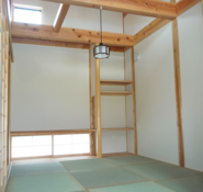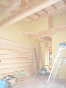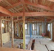 ⑤大工工事が終了し、内装の珪藻土塗り壁工事に入るところです(2019年12月中旬)
