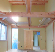 ⑥大工工事が終了し、内装(珪藻土塗り壁)工事が進んでいる現場です!(2020年7月初旬)