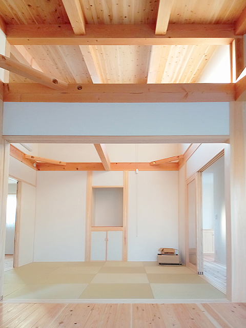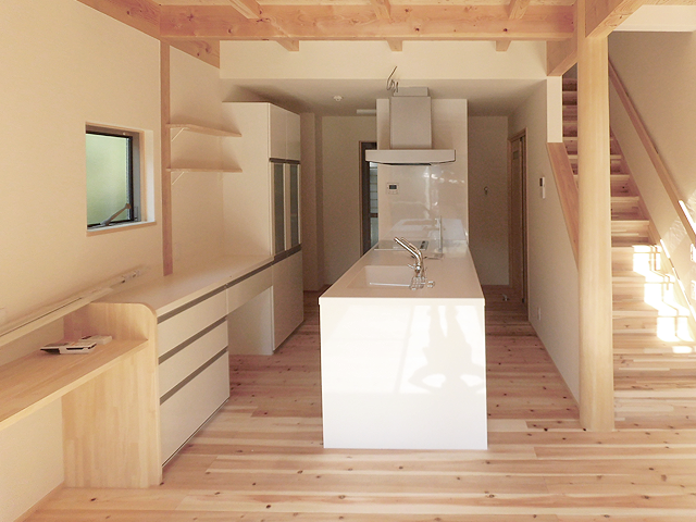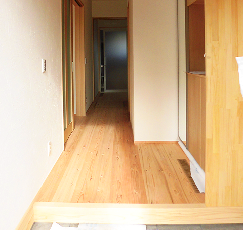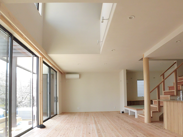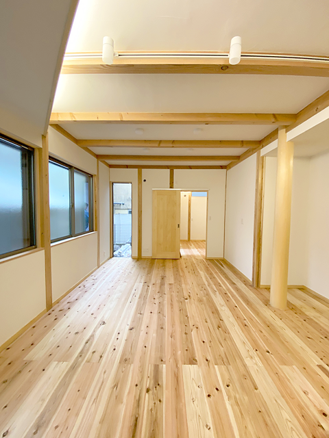 内部養生が外れ、クリーニング工事が終了して内観がお披露目になりました。特別注文に応えていただいた「ちばの木床材・節少な目(厚30mmの杉板)」の床が、初お披露目です!お施主様にご協力いただいて完成見学会を開催することができました! 数多くの皆様にご来場いただき、「住む人の健康と地球環境に優しい、長持ちする家づくり」を広めることができました!