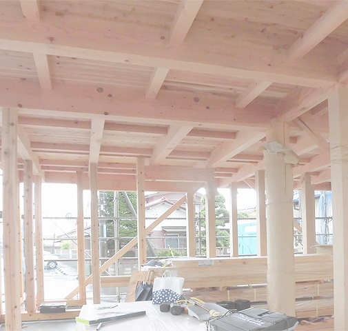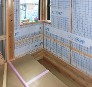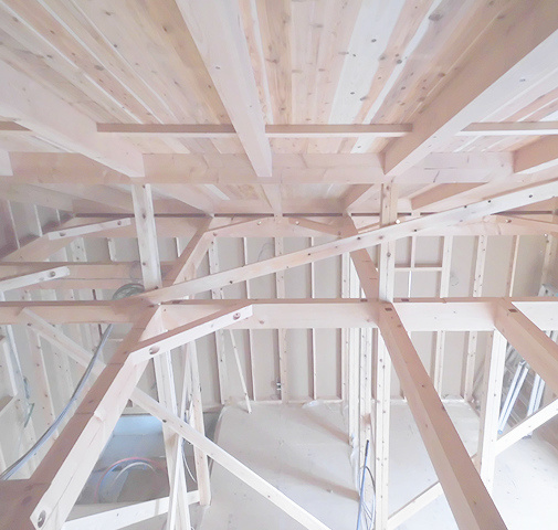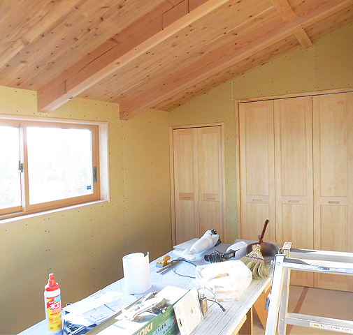 ④大工工事が終了した現場。間もなく珪藻土塗り壁工事がスタート!(2021年7月上旬)