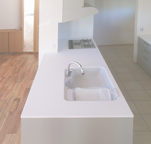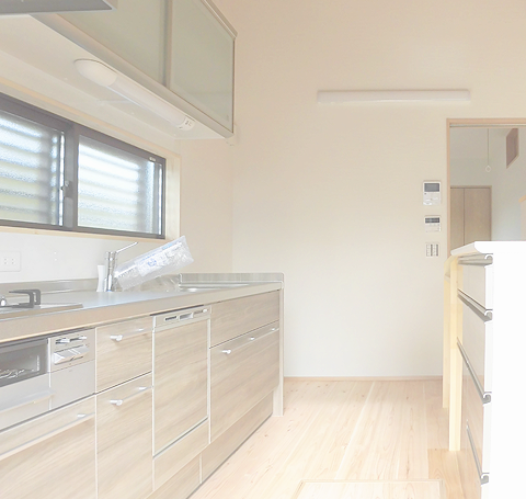 外周りは、外壁の光触媒機能(防汚・抗菌・防臭・防カビ)と撥水機能を備えた、通気性があり(=呼吸する)、水が浸透しない(=防水層を形成する)無機質系の漆喰塗り壁が仕上りました。足場も外れ、外観のお目見えです。内部は1階・2階ともにキッチンが入り、収納内造作工事も終わって、大工工事が終了しました。間もなく珪藻土塗り壁仕上げ工事に入ります。あとは外構とエアコン・照明・カーテンを予定通りに完了して、2020年1月末のお引渡しを迎えたいと思います。