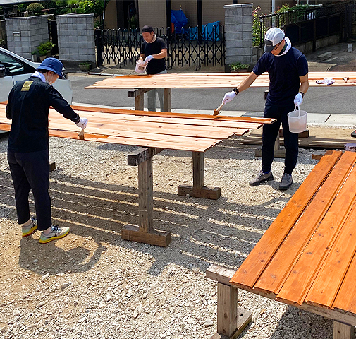 ⑥お施主様ご家族と一緒に「塗装会」を行いました!(2018年4月21日)