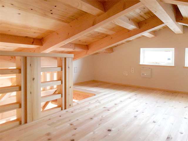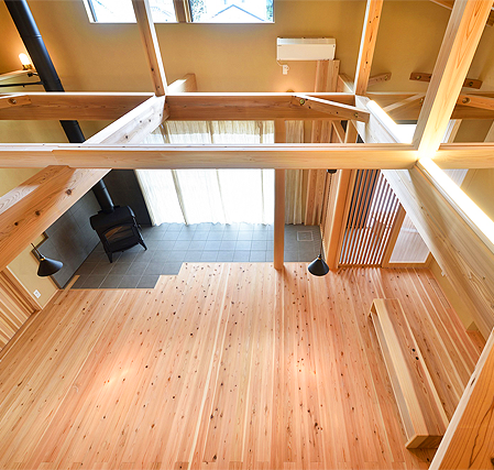 [その他]●吹抜け ●勾配天井 ●ロフト ●薪ストーブ ●外壁:腰壁/20mm厚スギ無垢板貼り+木材保護塗料(プラネットウッドコート)仕上げ、上部/漆喰系塗り壁仕上げ