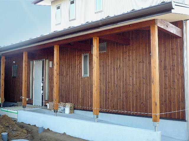 ガルバ鋼板・ぬり壁・板貼りを組み合せ、設計顧問の先生とじっくり造り上げた「力作」が完成しました!