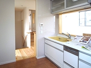 NEW 吊戸を付けない見晴らしの良いキッチンタイプです。納戸・洗面・風呂の水廻りが一直線で使いやすい動線です。