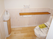 当社の花井モデルハウスの1階トイレと似たタイプです。腰板貼りが癒されるトイレになりました。
