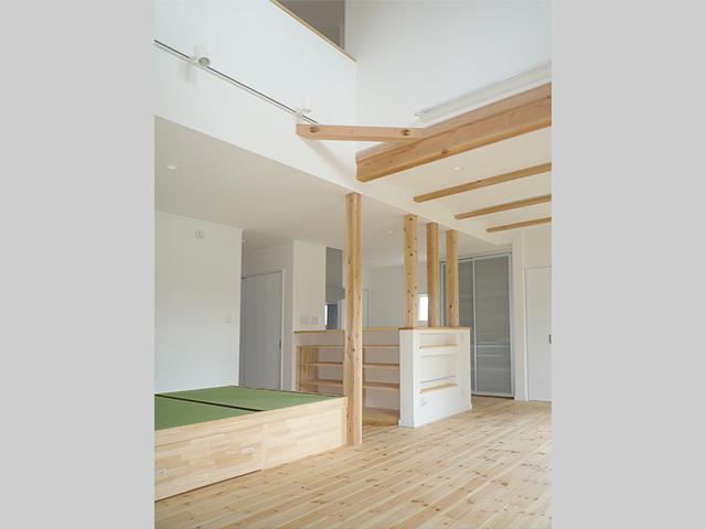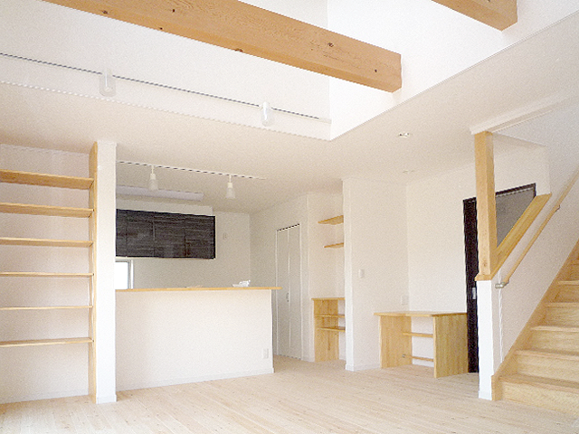 大きな吹抜けと、家族みんなが繋がる「大空間造り」ができあがりました!