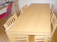 花井モデルハウス2階の洋室での打ち合わせ用に使用している「ヒバ・ダイニング5点セット」です。価格:104,790円(税込)