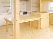 オリジナルのダイニングテーブルと、1段上がった調理台です。下は収納になっています。