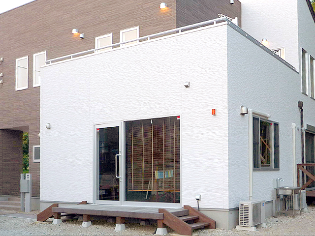 北側に付いたウッドデッキです。荷物の搬出入との兼用になっていて、室内とフラットになっています。