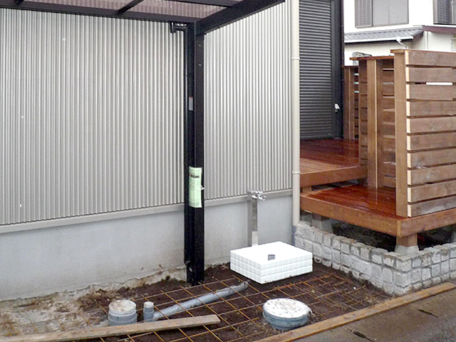 敷地を有効活用して、あますことなくウッドデッキになりました。視線を遮る目隠しの役目もしています。