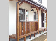 玄関ポーチと続きで仕上げたウッドデッキです。リビングの目隠し用に手摺りが付きました。