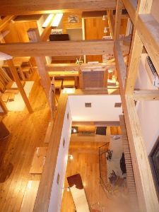 吹き抜けを設けた大空間をつくっても、デコスドライ工法なら、1階と2階の温度差もわずか! 室温の「バリアフリー」を実現しています。自然素材の良さを、じっくりとご覧いただき、触れて、その温もりを感じてみてください。