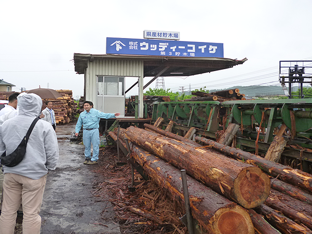 6月下旬完成予定の「みずき新モデルハウス」から採用する秩父スギ・ヒノキの生産現場から製品になるまでを詳しい説明付きで研修しました。